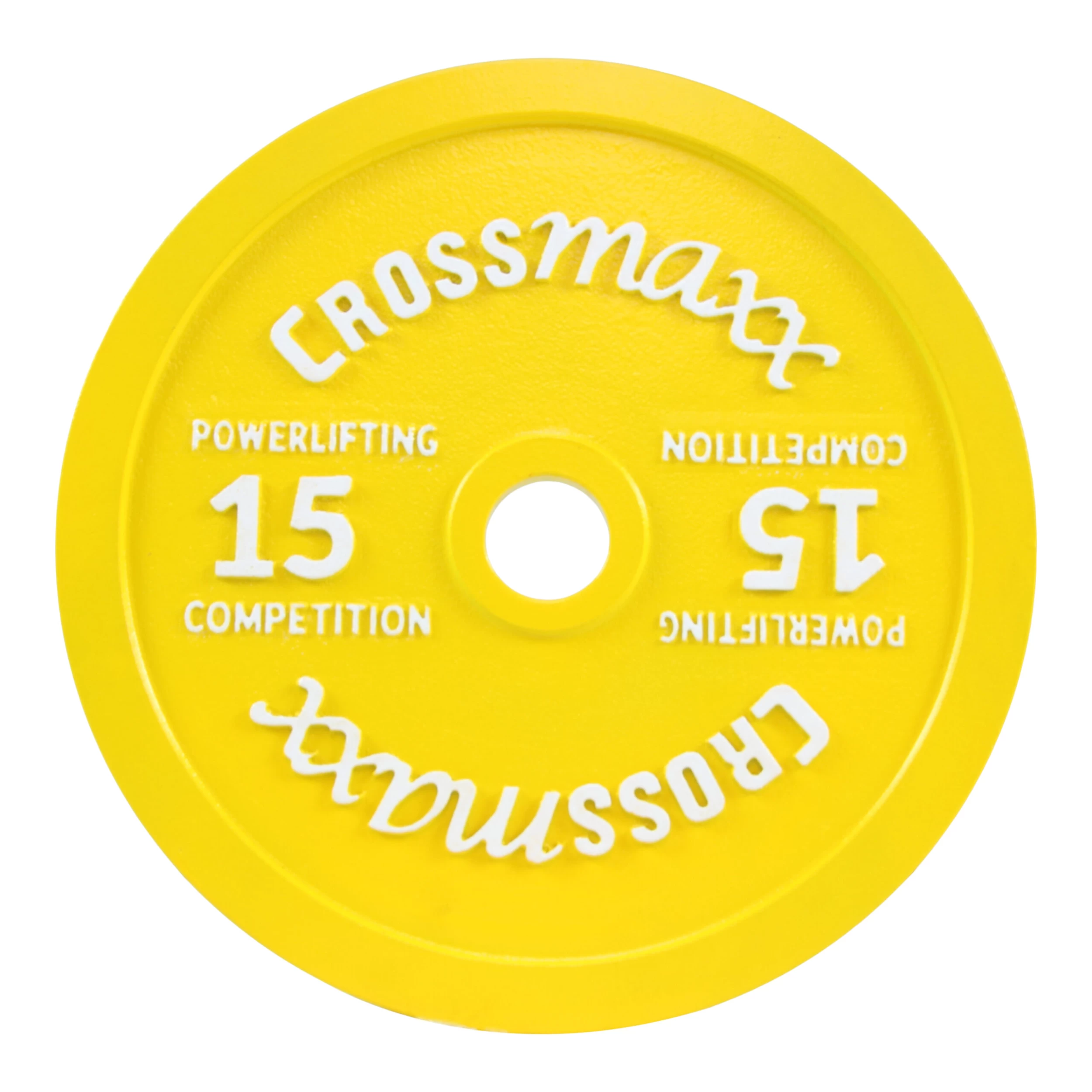 Crossmaxx kalibreret vægtskive 15 kg i støbejern til styrkeløft – gul