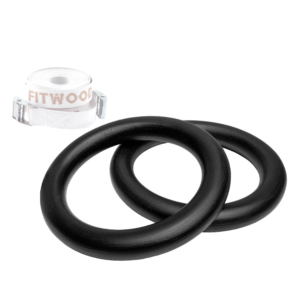 FitWood ULPU MINI Gymnastikringe 28mm – Sort overflade / Hvid Strop